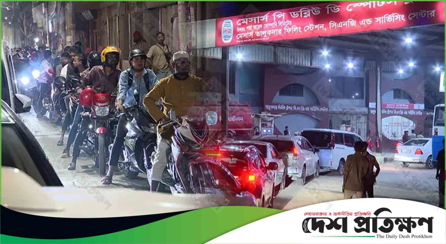 মৎস্য ভবনের আরেকটি ফিলিং স্টেশনেও অপেক্ষায় থাকা যানবাহনের সংখ্যা কাছাকাছি। সেখানে সকাল ১০টার সময় তেল নিতে লাইনে আছে ৪২২টি মোটরসাইকেল ও ৩৫৮টি প্রাইভেট কার।